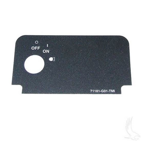 Product DescriptionDescription Key Switch Decal with On/Off and Lights fits: EZGO TXT/ Medalist Replaces OEM Number(s): EZGO: 71181G01 NOTE: Sold as (1) Key Switch Decal each.