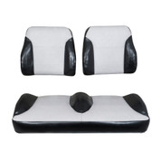 Looking to get a more comfortable ride on your golf cart along with a custom look? Then swap your old or original factory golf cart front seat with a set of custom Golf Cart Seat Cushions! Custom golf cart front seats are the perfect way to give your cart a totally fresh look, and to achieve added rider comfort with wider bolsters and thicker cushions. Not looking for custom seat cushions, but just replacement cushions for your old worn out seat foam? We have that too!